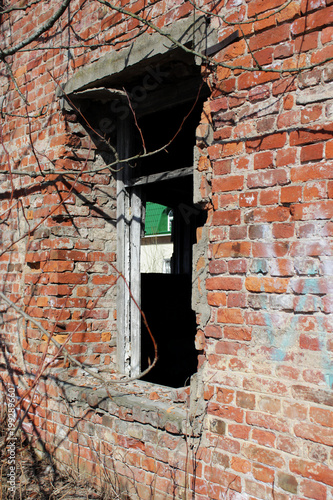 frame, retro, house, vintage, texture, old, architecture, brick, building, ethnical, exterior, red, rough, ruined, window, empty, vertical