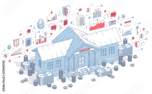 vector, design, illustration, three-dimensional, isometric, linear, thin, line, business, finance, financial, money, concept, isolated, economy, commercial, transaction, payment, service, bank, banking, debit, building, architecture, investment, debt, credit, deposit, coin, 100, dollar, stack, cash, pile, funds, icon, infographic, chart, diagram, shield, protect, safety, arrow, loop, calendar, mail, lock, key, speech bubble, document