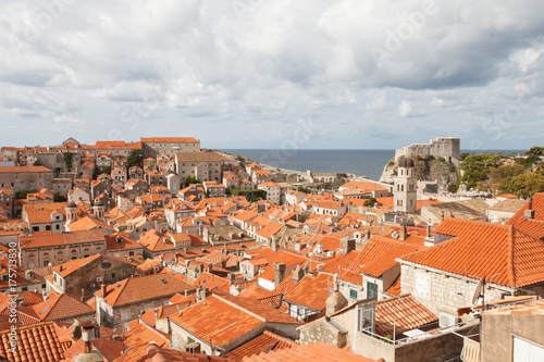 old city of Dubrovnik. A view from above of the ancient houses and fortress Lovrijenac. Croatia