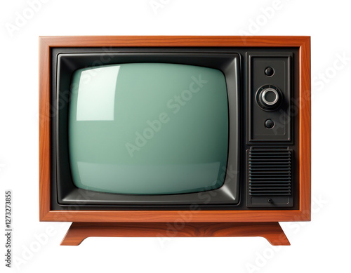 Old classic retro style television with cut out screen, vintage old tv on isolated on white