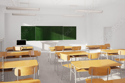 three-dimensional, classroom, board, illustration, forest, business, blank, learn, training, green, building, architecture, interior design, grey, background, light, nobody, schooling, training, school, gym, study, room, furniture, table, chair, teaching, window, heating