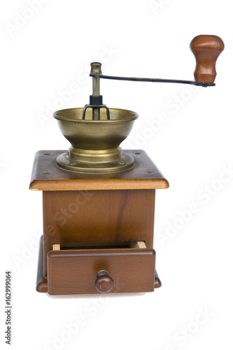 Old coffee grinder isolated on white
