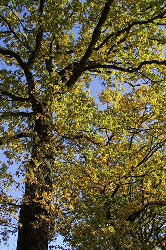 Old english oak - pedunculate oak - leaves in autumn colours - colourful foliage