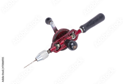 drill, drilling, hand, manual, power, old, isolated, aged, steel, carpenter's shop, white, craft, machinery, tool, red, handle, men at work, traditional, used, building, gear, equipment, retro, carpenter, machine, home, mechanic, chuck, antique, vintage, background, work, instrument, repair, industry, hole, construction, worn, builder, metal
