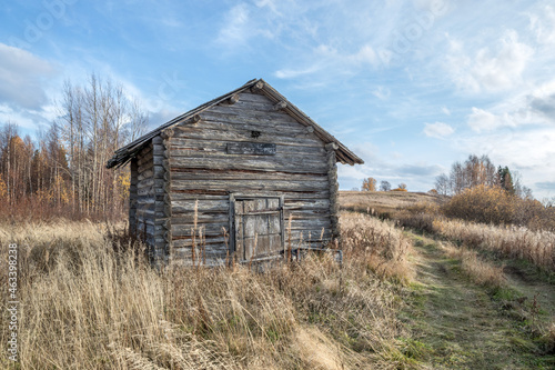 Old house. Wooden barn. The tract.