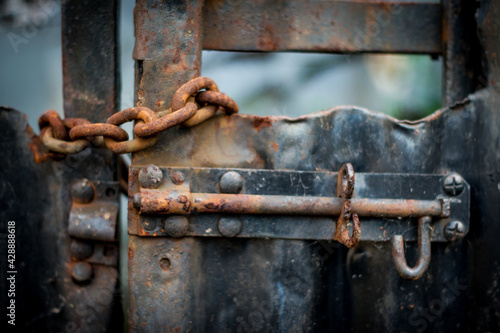 lock, old, door, metal, rust-eaten, padlock, rust, iron, chain, gate, security, antique, vintage, closed, locked, safe, steel, wood, key, safety, handle, dirty, latch, ancient, entrance