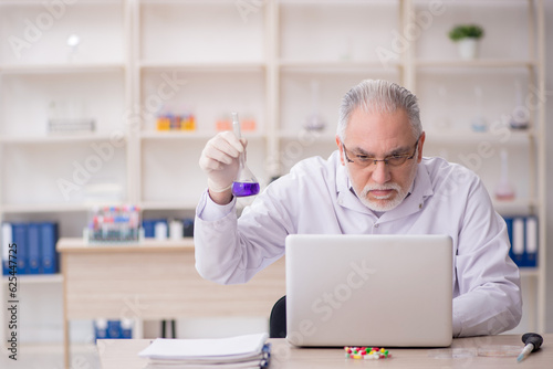 Old male chemist working at the lab