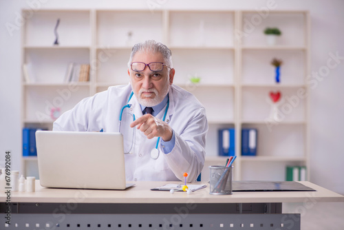 specialist, care, clinic, doctor, health, health care, hospital, old, remote, computer, laptop, online, cyberspace, sleepy, sad, stressed, unhappy, upset, frustrated, disappointed, pointing, showing, medicals, medicine, physician, practitioner, recovery, recovering, treatment, working, insurance, healer, consultation, man, discussing, explaining, experienced, diagnosis, diagnostic, work, surgeon, prescription, healthy, practice, stethoscope, exam