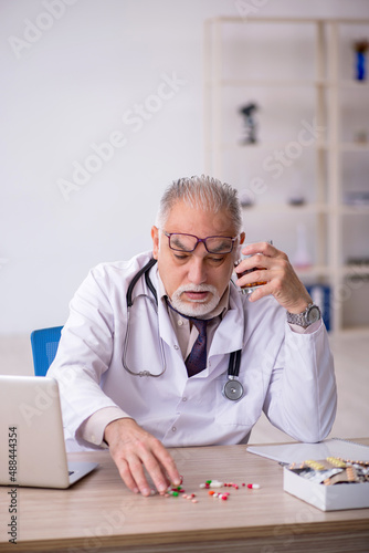 Old male doctor working at the hospital