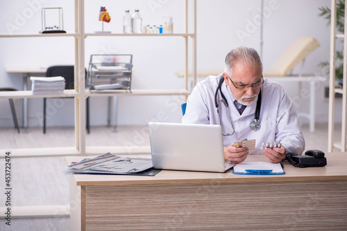Old male doctor working in the clinic