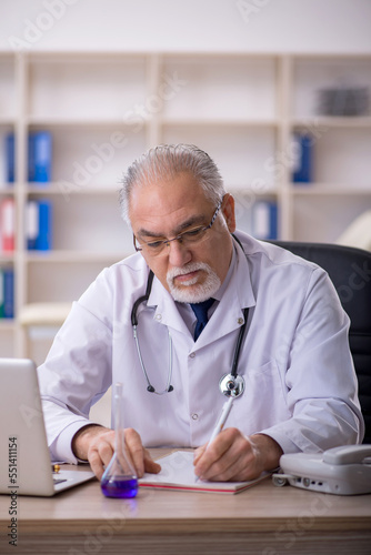 Old male doctor working in the clinic