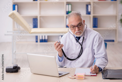 Old male doctor working in the clinic