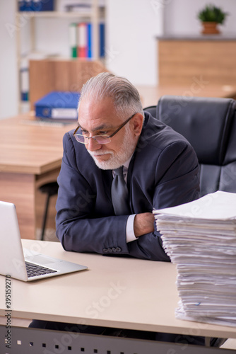 Old male employee working in the office