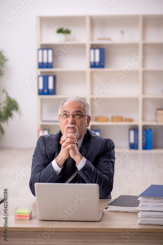 Old male employee working in the office