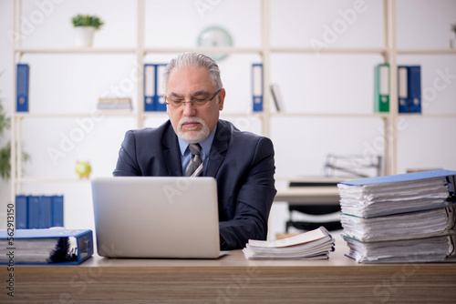 Old male employee working in the office