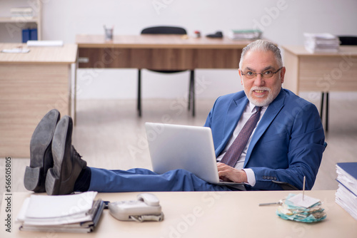 Old male employee working in the office