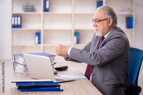 Old male employee working in the office