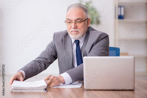 Old male employee working in the office
