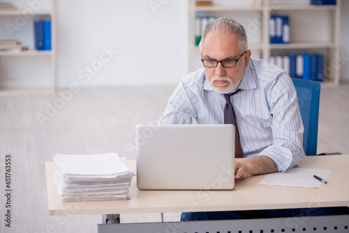 Old male employee working in the office
