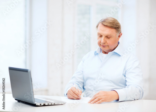 man, paper, document, form, businessman, laptop, pen, elderly, senior, pensioner, old, person, older, age, filling, in, tax, report, work, computer, business, men at work, employer, people, entrepreneur, official, insurance, service, mortgage, utility, contraction, municipal, banking, education, prof, teacher, exam, office, working, writing, home, director, paper, document, paperwork, workplace, legal, professional, corporate, serious