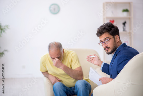 Old man visiting young male psychotherapist