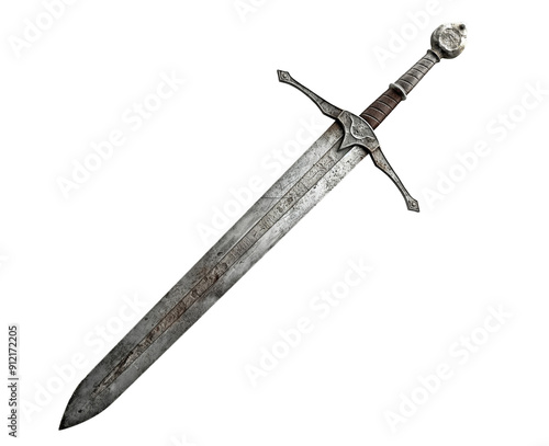 old medieval sword, metal antique weapon with rust. cut out