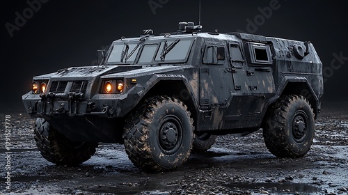 Old Military Vehicle on Dark Background