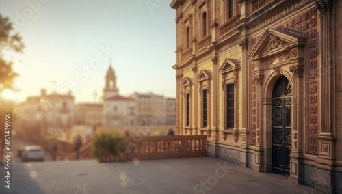 Old palace building in Andalusia, street view emphasizing heritage architecture, Spain travel