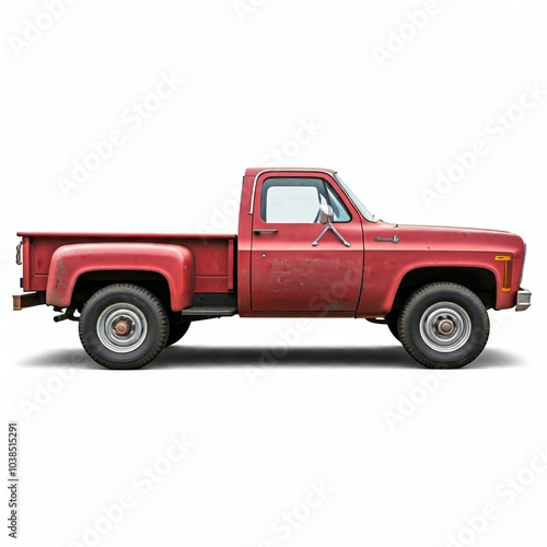 old red pick-up truck, side view, isolated on white