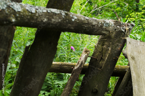 fence, flower, nature, old, pink, ramshackle, rural, wooden