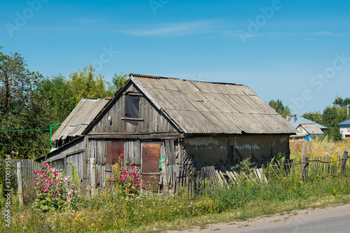 Old Rural house and fence in front of village