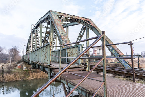 railroad, bridge, old, railway, rust-eaten, steel, track, metal, transportation, transport, iron, rail, river, background, travel, line, construction, train, sky, landscape, perspective, architecture, traffic, white, journey