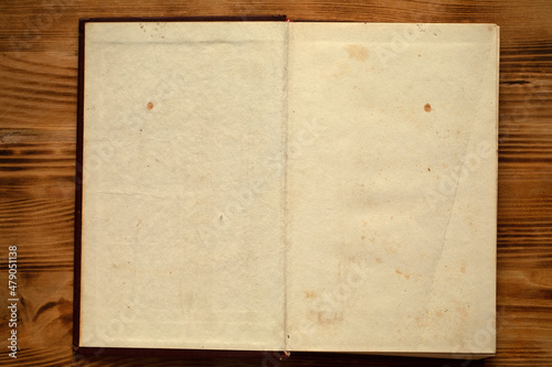 Old shabby book with yellow paper from time to time. Reversal.