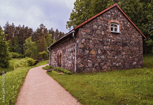 building, antique, ancient, historical, stone, commercial, agricultural, rural, domestic, stock, nature, landscape, summer, green, tree, plant, road, dirtied