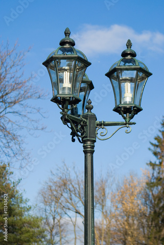 lamp, lighting, equipment, metal, old, style, street, iron, forging, sky, tree, cloud