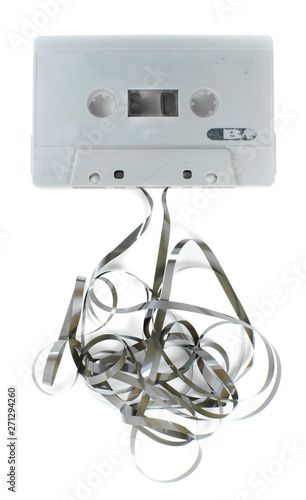 old tangled cassette isolated on white background