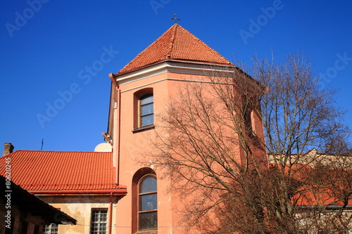 vilnius, lithuania, church, red roof, tree, window, sky, blue, cross, tower