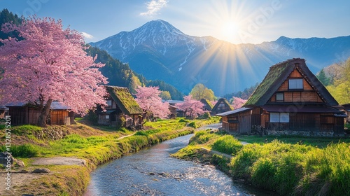 cherry blossom, shirakawa-go, mount fuji, japan, traditional, rice field, countryside, japanese, cherry, house, spring, architecture, asia, blooming, blossom, building, culture, field, green, heritage, home, landmark, landscape, local, mountain, natural, nature, japan, rural, sakura, sightseeing, summer, sunset, town, travel, tree, view, village, blossom, flower, foliage