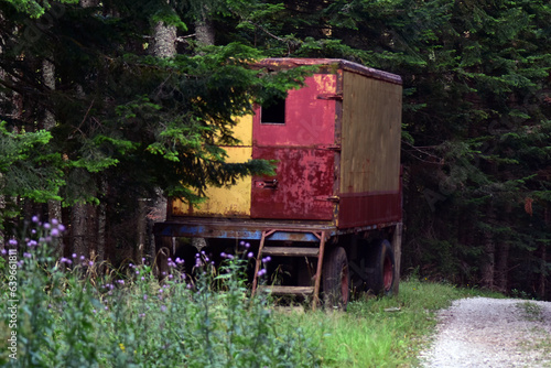 green, railway, truck, old, forest, transportation, tree, road, no people, nature, travel, industry, semi-truck, rural scene, delivering, driving, container, wheel, car, tractor, timberland