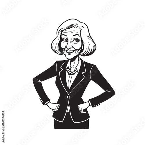 Old woman in formal clothes black and white vector illustration simple minimalist portrait design