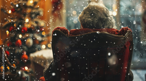old woman sitting on a chair on christmas in a retirement home