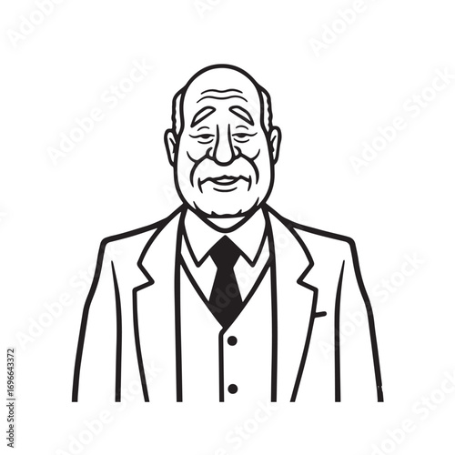 Old woman with formal suit black and white vector illustration for classic elegant portrait artwork