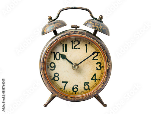 Old-fashioned alarm clock with two bells on top, isolated on a plain white background Transparent PNG