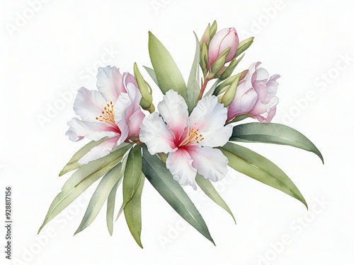 watercolor, oleander, pink flower, white flower, flower, green, background, white, design, abstract, illustration, floral, nature, plant, spring, print, bouquet, blossom, colours, texture, vintage, pattern, wallpaper, freshness, painted, closeup, paper, soft, delicacy, colorize, concept, ornament, copy, mosaic, defocused, geometric, ethnic, effect, space, bright, fantasy, wild, filter, violet