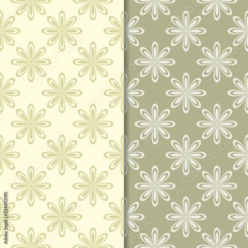 Olive green floral backgrounds. Set of seamless patterns