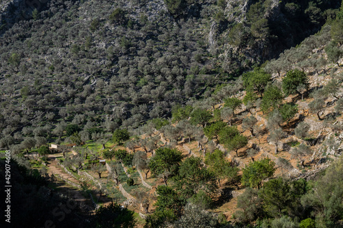 olive grove on the green route of the olive tree, Caimari, Mallorca, Balearic Islands, Spain