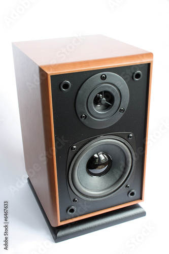 On a photo the speaker of black color in a wooden box.