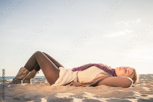 caucasian, winter, woman, coastline, cold, female, adult, sea, coast, attractive, autumn, beach, beautiful, hat, jean, ocean, outdoors, outside, person, recreation, sand, foulard, sitting, weather