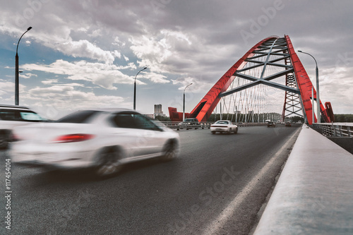 On Bridge/Cars driving on Bugrinsky Bridge, Novosibirsk, Russia