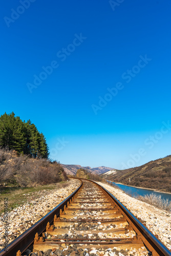 railroad, train, railway, track, rail, travel, transportation, track, sky, steel, road, landscape, nature, rail, transport, perspective, line, green, way, journey, metal, horizon, blue, industry, outdoors, station, locomotive, city, urban, old, platform, passenger, speed, traffic, vehicle, transit, public